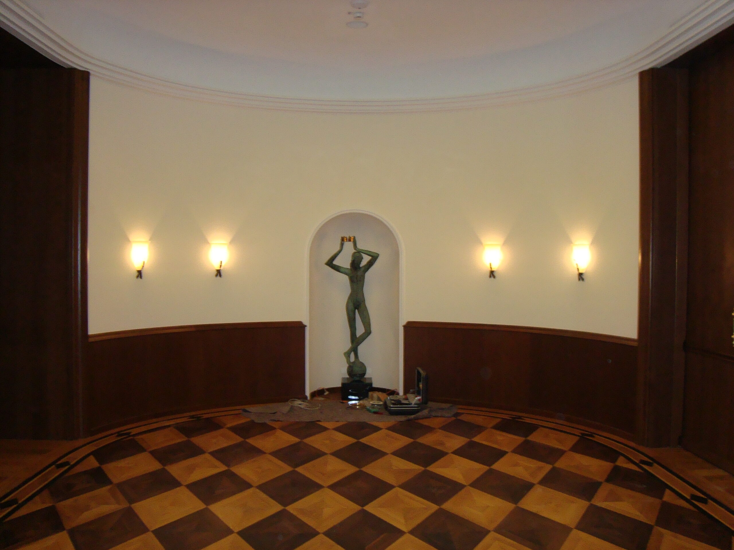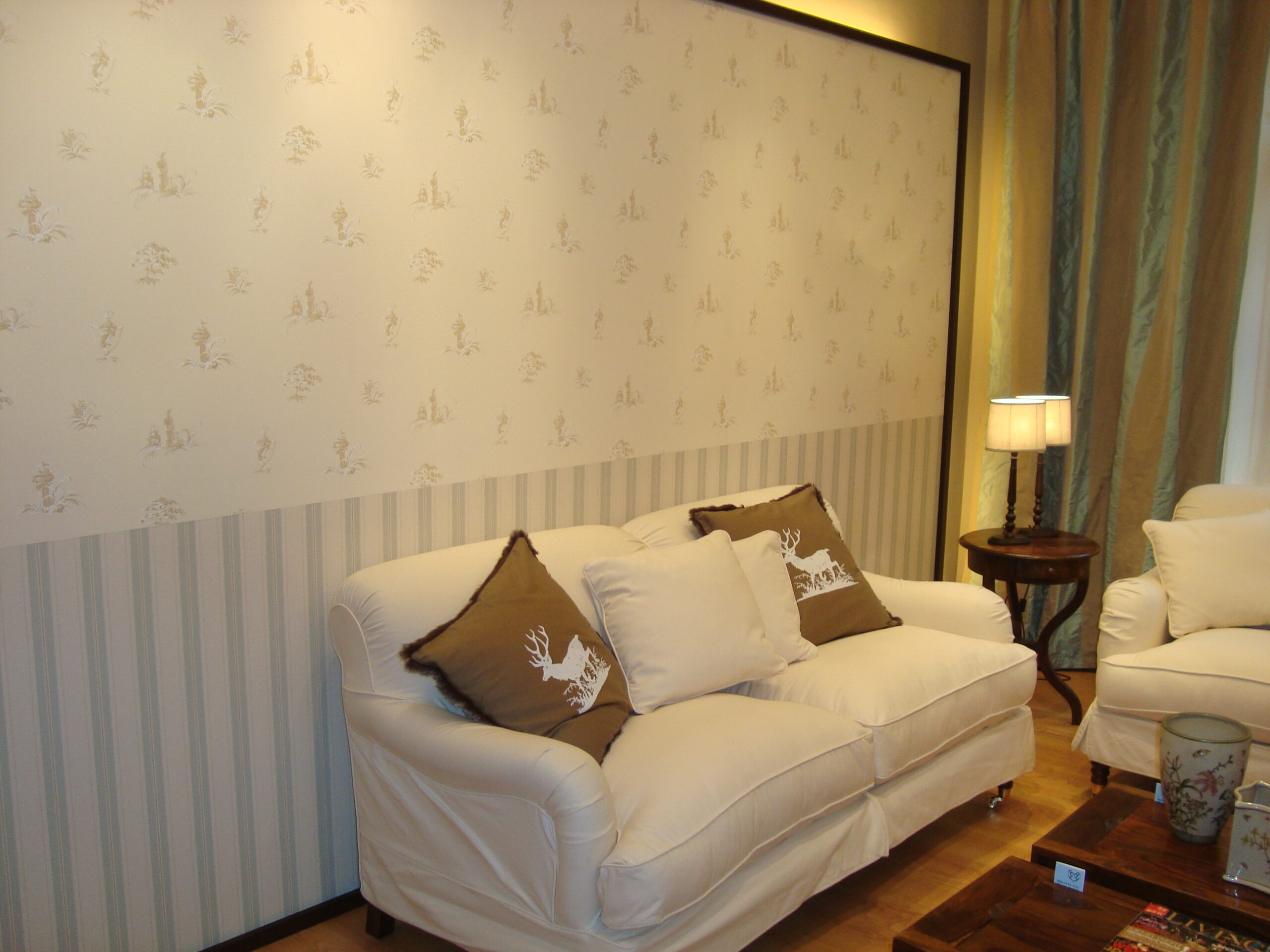 Der Laden wurde durch umfangreiche Tapezierarbeiten mit verschiedenen Mustertapeten und diversen Anstricharbeiten aufgewertet.
